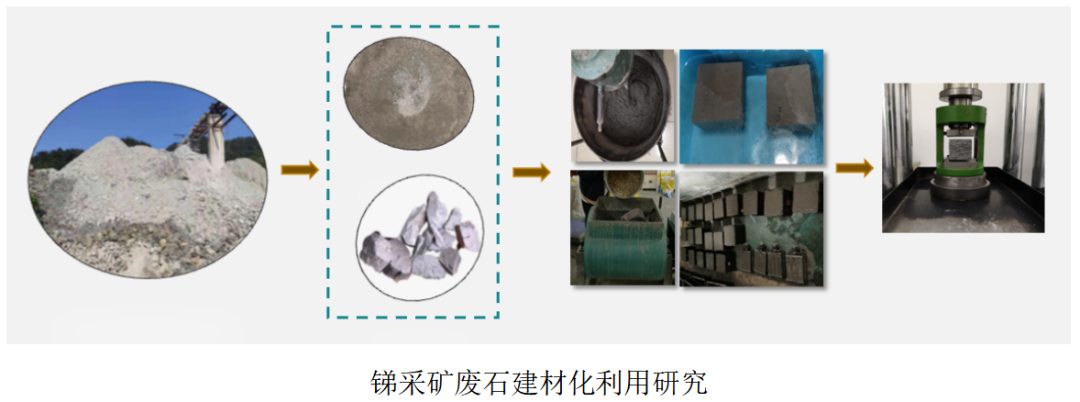 湖南省采矿废石、选矿尾砂等大宗一般工业固体废物产生量超过2000万吨,但资源化利用率低。从2016年起,研究团队开始对锑采矿废石等大宗化应用于制备水稳层及混凝土的工艺进行探索跟踪研究,通过长期监测不同养护时间砌块重金属(Sb、As、Pb等)形态、释放特性和抗压抗折强度,揭示了采矿废石建材化利用过程重金属稳定化机理及中长期环境行为,并探索出含重金属固废的清洁安全利用途径,相关研究成果发表在《International Journal of Environmental Science and Technology》,并在冷水江锡矿山和益阳桃江久通锑业进行了成果转化,也为岳阳桃林铅锌矿、岳阳万鑫黄金公司等采选企业提供了技术咨询服务。此外,研究团队还针对锰渣、铍渣、含铊污泥等湖南典型工业固体废物的出路问题,开展了水泥窑协同处置、固化稳定化、新型材料制备等利用途径的探索。