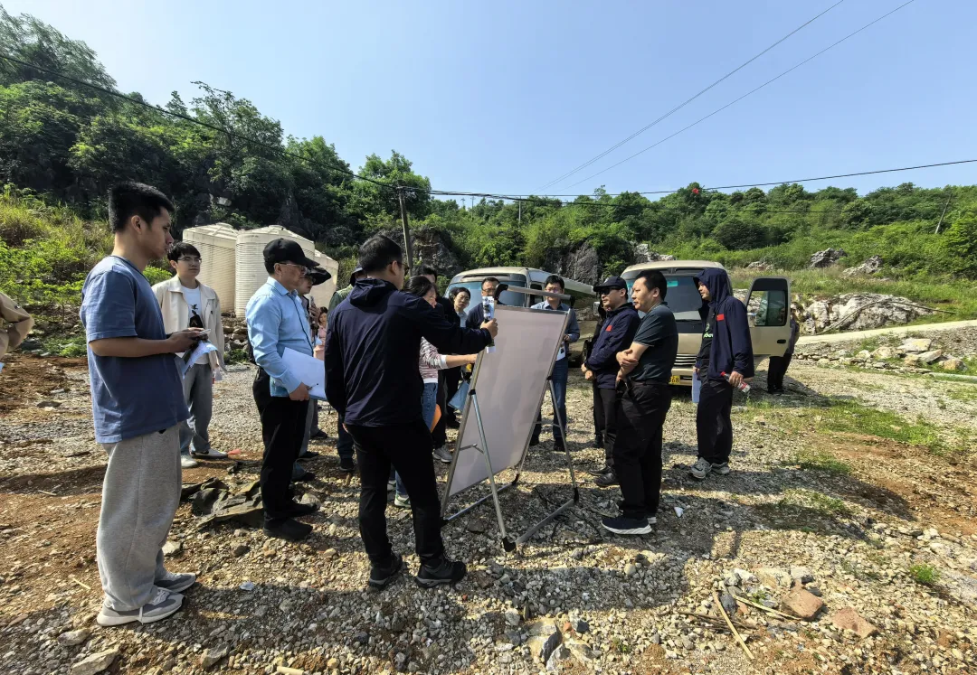 我院工程公司负责人结合前期调查成果,对示范区水文地质情况和现场污染分布,示范区的工作范围初步划定及下一步的工作安排进行了详细汇报,并表示,郴州临武香花岭示范区选址具有强渗透地层岩溶区典型地质特征与治理迫切性的双重价值,我们团队将联合岩溶所等专业调查单位,依托前沿调查技术,继续深入开展下一阶段的精细化现场勘察,精准锁定污染扩散优势通道,为后续靶向管控提供技术支撑与实践经验。